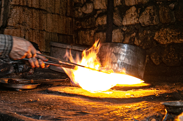 Sabahın erken saatlerinde açtığı iş yerinde ocağının başına geçen Muratoğlu, müşterilerinin getirdiği bakır tepsi ve tencereleri kalayla parlatıyor.