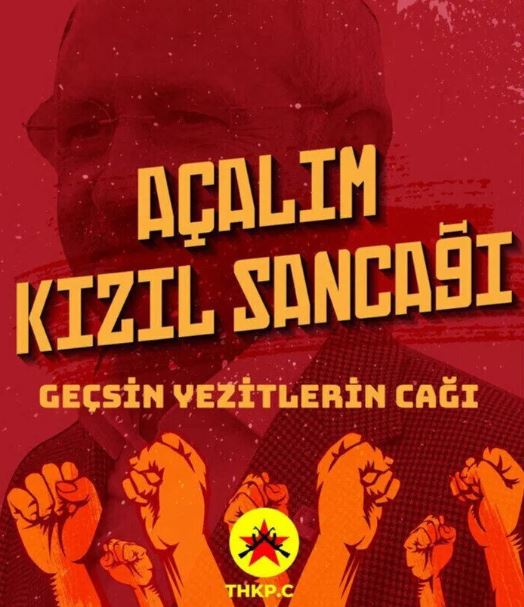 Millet İttifakı'nın adayı CHP Genel Başkanı Kemal Kılıçdaroğlu'nun seçim kampanyasındaki "Açalım kızıl sancağı geçsin yezitlerin çağı" sloganını afiş haline getiren terör örgütü THKP-C, Kılıçdaroğlu'nun Alevi kimliğine dikkat çekerek oy çağrısı yaptı.