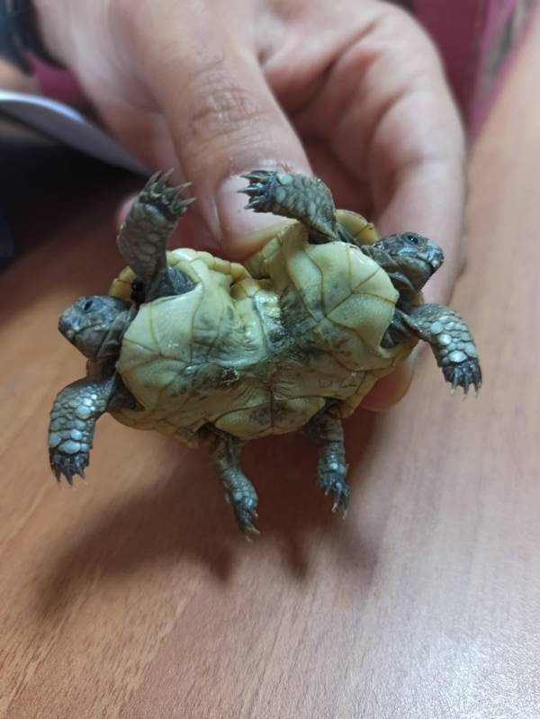 "Yakından baktığımızda bu türün siyam ikizi olduğunu da görebiliyoruz. Biraz daha detaylı bakınca mide kısmından başlamak üzere sindirim sisteminin tek bir açıkla dışarıya çıktığını görüyoruz. Aynı şekilde arka bacaklarda tek bir bireye aitmiş gibi görünüyor. Böyle bir türün doğada yaşaması çok zor. Biz de bu siyam ikizi kaplumbağaları laboratuvarımızda yaşatmaya çalışacağız, umarım başarılı oluruz."