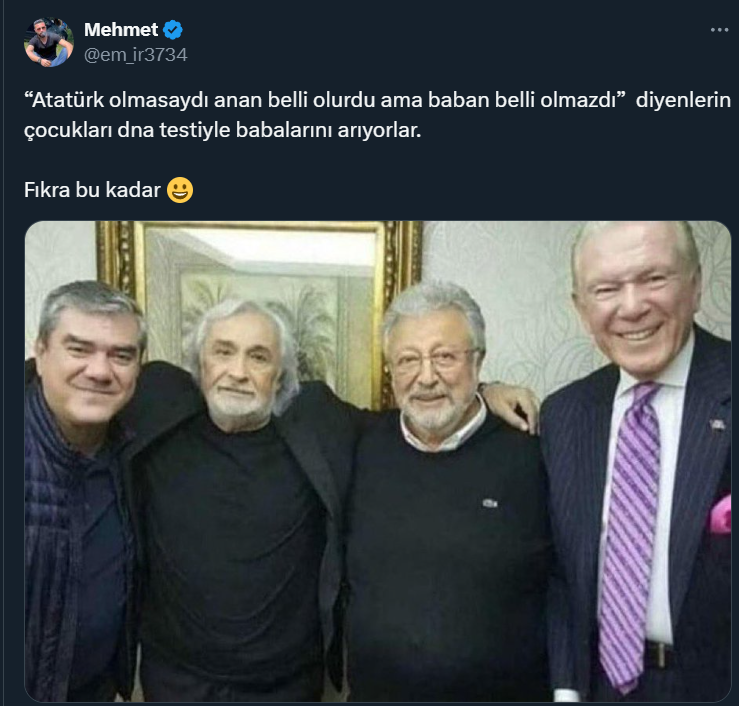 Bir vatandaşın sosyal medyadan yaptığı paylaşım ise büyük ilgi gördü. Söz konusu paylaşımda, ““Atatürk olmasaydı anan belli olurdu ama baban belli olmazdı” diyenlerin çocukları DNA testiyle babalarını arıyorlar. Fıkra bu kadar” denildi.