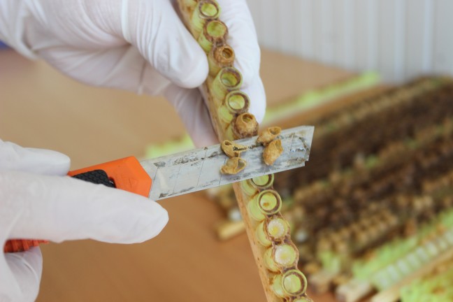 Bursa'da 4 kişilik ailesiyle birlikte arı sütü sağımına başlayan Mehmet Durgut, her gün içine larva yerleştirdiği peteklerini açarak arı sütünü sağıyor. Bir kovandan günlük 2-4 gram arı sütü hasat ediliyor.