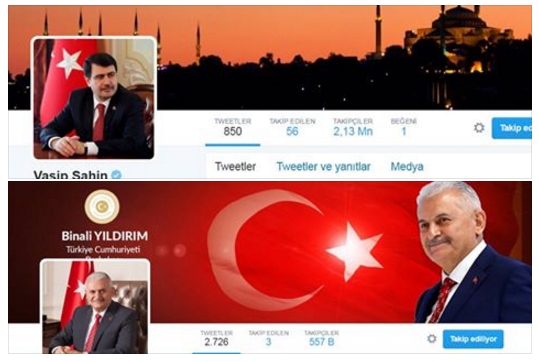 Biri Başbakan Binali Yıldırım'ın, diğeri de İstanbul Valisi Vasip Şahin'in twitter hesapları...