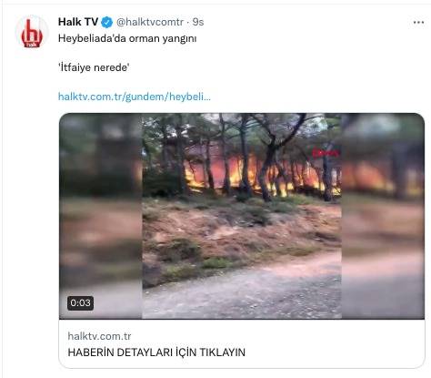 CHP yandaşı Halk Tv, Heybeliada'daki yangın üzerinden iktidarı hedef almak isterken yine kendini rezil etti. CHP'nin sorumluluğundaki bölgeden de iktidarı sorumlu tutmaya çalışan Halk Tv, 'Heybeliada'da yangın! İtfaiye nerede?' ifadelerini kullandı.