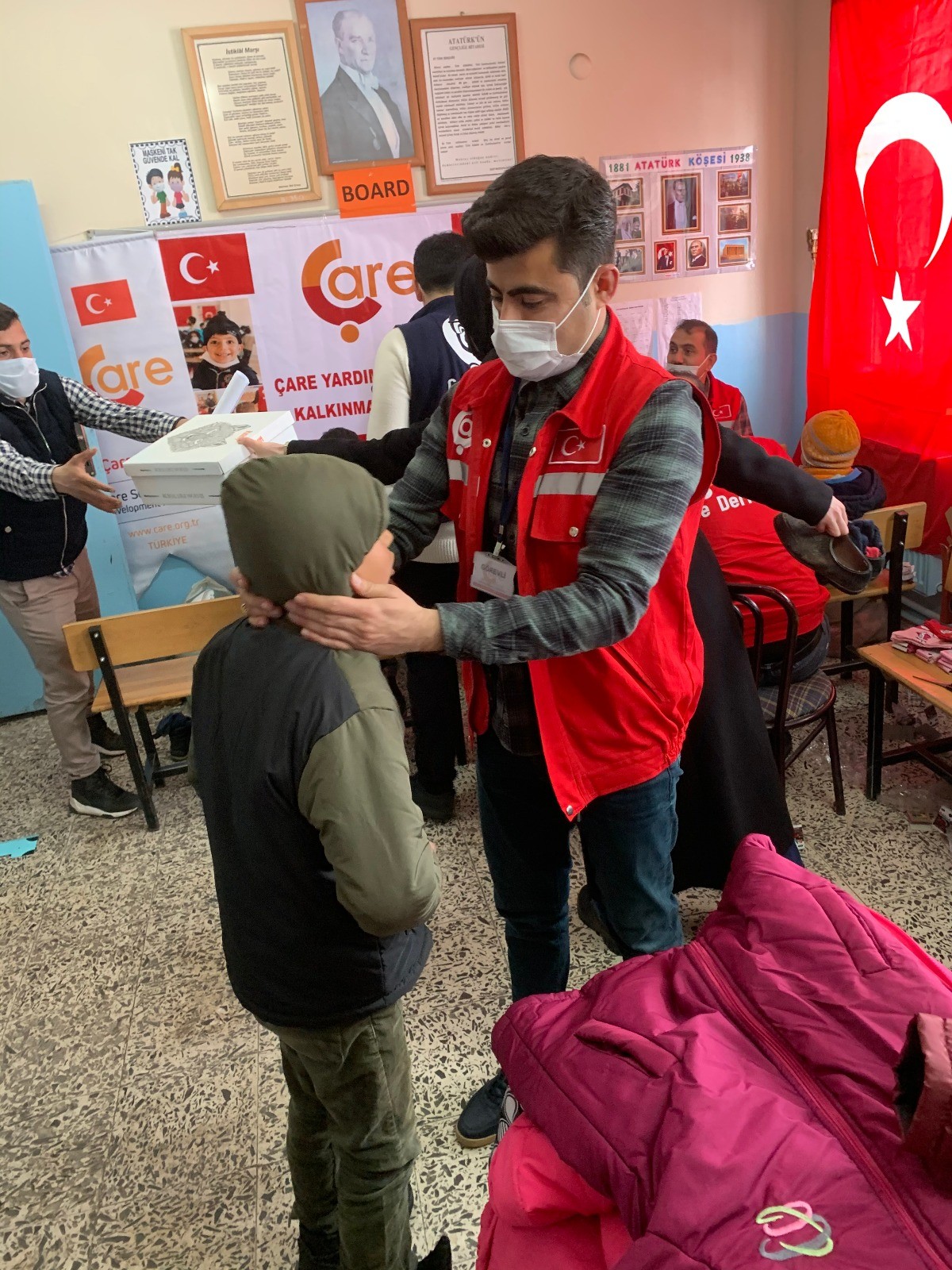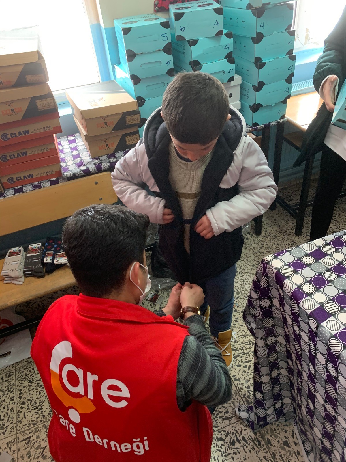 Öğrenciler çok sevdikleri okullarından ayrı da kalsalar eğitim aralıksız devam ediyor. Ancak soğuk havalar köylerdeki bazı öğrencileri zor durumda bırakabiliyor. Çare Derneği, pandemi şartlarında zor durumda olan ailelerin yanında olmaya devam ediyor. Bitlis Tatvan’a bağlı Eğritaş İlkokulu ve civar köylerdeki okullarda eğitim gören 120 öğrenciye ayakkabı, çorap ve mont yardımında bulundu.