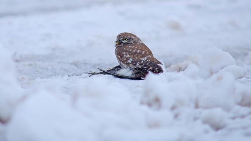 Karelerde, kukumavın çulluk kuşunu kar üzerinde pençeleri altında tuttuğu ve avın bir kısmının tüketildiği dikkat çekti. Görüntülerle ilgili değerlendirmede bulunan Dr. Cihan Önen, Bitlis genelinde etkili olan yoğun kar yağışı ve soğuk havanın doğal alanları ve kırsal bölgeleri kar örtüsüyle kapladığını belirtti. Önen, "İl ve ilçelerde geniş alanlar karla kaplandı. Bununla birlikte sulak alanların ve sazlıkların büyük bir kısmının donduğunu gözlemledik. Bölgede kukumav kuşunu genellikle gece avlanırken görürdük; ancak su çulluğu gibi bir kuşla beslenmesine ve bunun gündüz gerçekleşmesine tanık olmamıştık. Ağır kış şartlarının bu türlerin beslenme davranışlarını tetiklemiş olabilir. Biz de bu nadir anı Bitlis’in Güroymak ilçesinde görüntüledik" dedi.