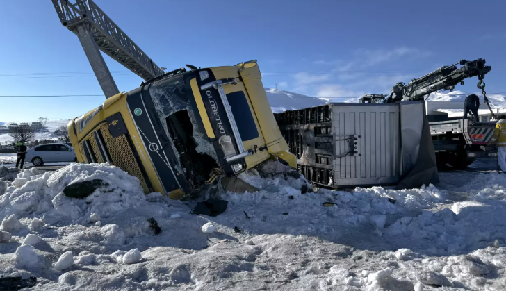 itlis'te Tatvan istikametine giden S.K. yönetimindeki 33 AHS 757 ile Y.G'nin kullandığı 34 KZ 2105 plakalı büyükbaş hayvan yüklü tırlar, kontrolden çıkarak devrildi.
