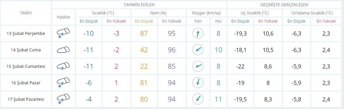 Meteoroloji Genel Müdürlüğü tarafından yapılan son değerlendirmelere göre; Marmara'nın güney ve doğusu, Ege, Batı Akdeniz, İç Anadolu, Karadeniz, Doğu ve Güneydoğu Anadolu ile Hatay, Osmaniye ve Kahramanmaraş çevrelerinin yağışlı geçeceği tahmin ediliyor. Yağışların; Marmara, Ege, Batı Akdeniz ve Karadeniz kıyı kesimlerinde yağmur ve sağanak, yağış alan diğer yerlerde karla karışık yağmur ve kar şeklinde olması bekleniyor. İç ve doğu kesimlerde buzlanma ve don olayı bekleniyor. Doğu Karadeniz’in yüksek kesimlerinin dik yamaçları ile Doğu Anadolu’nun doğusunda yüksek kar örtüsünün bulunduğu yerlerde çığ tehlikesi bulunmaktadır.