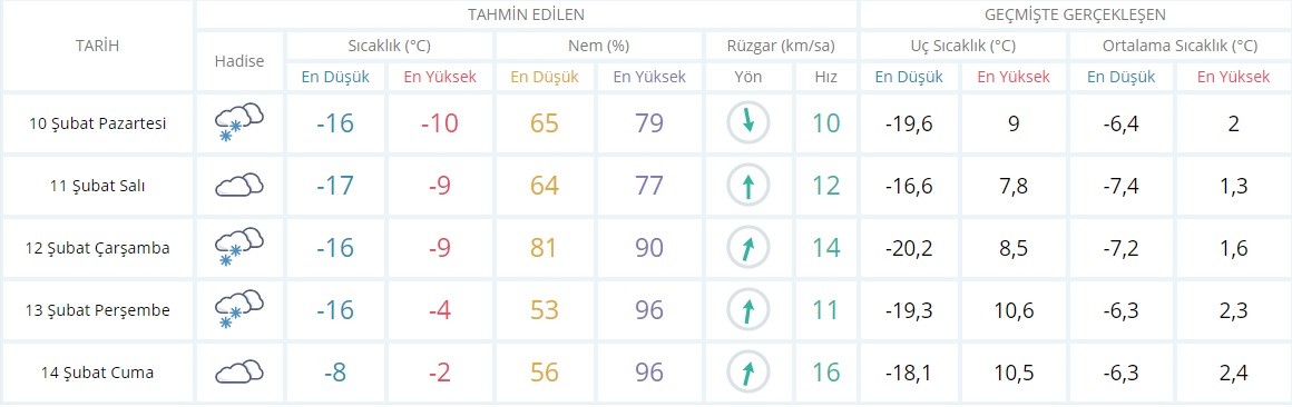 Bitlis’in 5 günlük hava tahmin raporu şöyle: