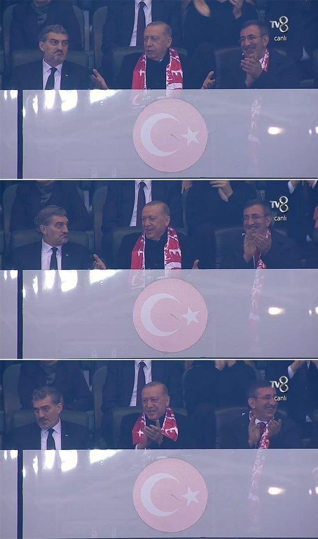 Millilerin 35. dakikada Yunus Akgün’ün ayağından bulduğu üçüncü golünün ardından, Başkan Erdoğan'ın duyduğu heyecan ve verdiği tepkiler sosyal medyada hızla yayıldı ve gündem oldu. Başkan Erdoğan’ın gol sonrası sevinci, konuk Cumhurbaşkanı Kavelaşvili’nin tepkisiyle yan yana gelince ortaya ilginç ve samimi görüntüler çıktı.
