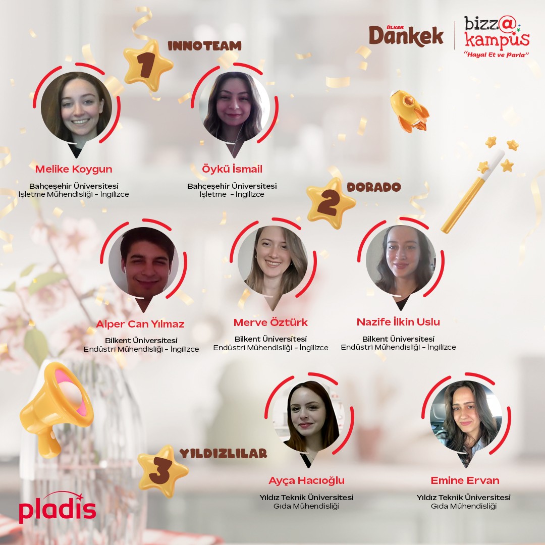 Üniversitelerin 3., 4. sınıf ve yüksek lisans öğrencilerinin Ülker’in en sevilen markaları için geliştirdiği yenilikçi pazarlama fikirlerinin yarıştığı ‘bizz@kampüs’te, “InnoTeam” takımı “Ülker Dankek” için hazırladığı projeyle birinciliğe layık görüldü. 115 farklı üniversiteden 790 takım ve 1800’den fazla öğrencinin başvurduğu yarışmada, ilk 3’e giren takımlar toplam 127 bin 500 TL ödül ve uzun süreli staj yapma hakkı kazandı.
