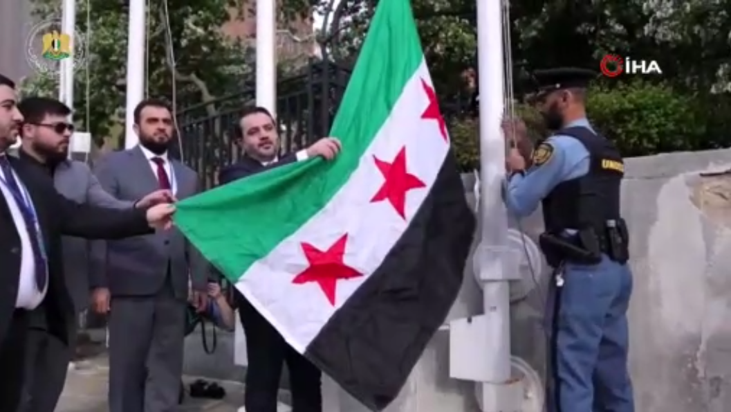 Suriye Dışişleri Bakanı Esad Hasan Şeybani, New York’taki Birleşmiş Milletler (BM) Genel Merkezi’nde yeni Suriye bayrağını göndere çekti.