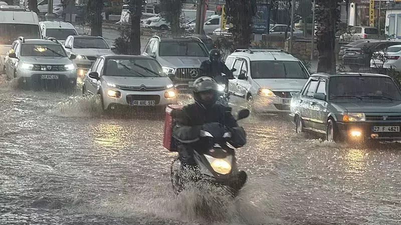 Muğla’nın Bodrum ilçesinde sabaha karşı aniden bastıran şiddetli sağanak yağış, hayatı felç etti! Bardaktan boşalırcasına yağan yağmur nedeniyle yollar kısa sürede dereye dönerken; İslamhaneleri, Akyarlar ve Kumbahçe gibi mahallelerde çok sayıda ev ve iş yerini su bastı. Yağışın şiddetine dayanamayan bir binanın istinat duvarı büyük bir gürültüyle çökerken, facianın eşiğinden dönüldü.
