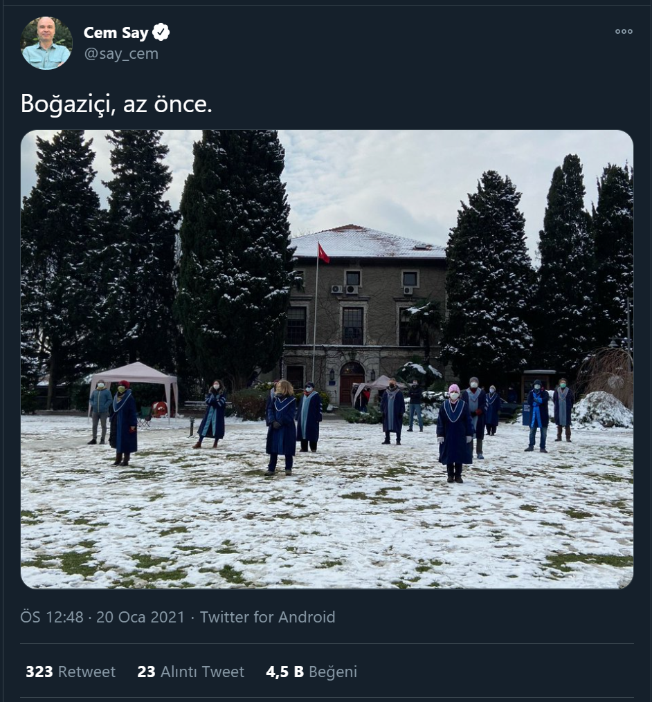 Görüntüleri Twitter hesabından paylaşan Cem Say, "Boğaziçi, az önce." ifadesini kullandı.