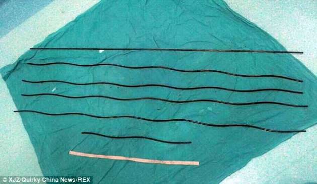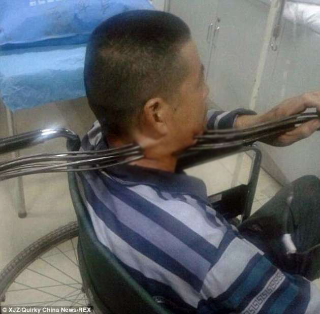Çin'in Hubei eyaletine bağlı Xiangyang kentinde köprü inşaatında çalışan bir işçi, boğazına altı demir çubuk birden saplandığı halde sağ kalmayı başardı.