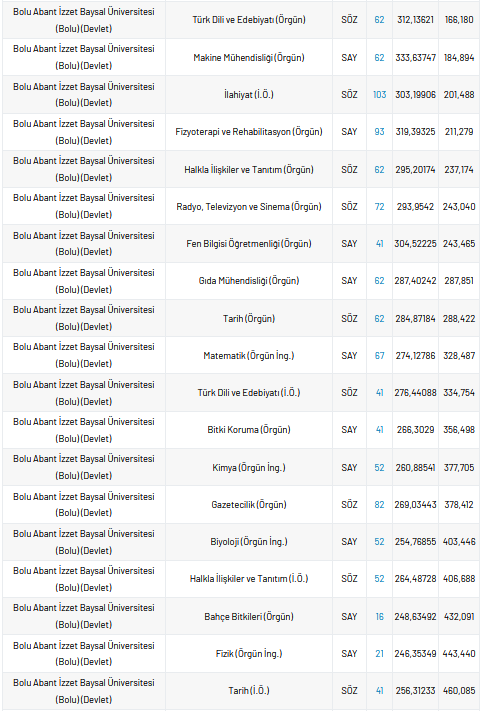 Üniversite 2021 tabun puanları yüzdelik dilimleri. ÖSYM tarafından üniversiteye girecek öğrencilere yönelik YKS sınavının uygulanacağı tarih açıklandı. ÖSYM’nin açıklamasından sonra öğrenciler gidecekleri üniversitelerin taban puanları başarı sıralaması araştırılıyor. Peki, Bolu Abant İzzet Baysal Üniversitesi 2021 taban puanları ve yüzdelik dilimleri nelerdir