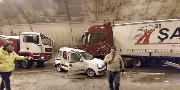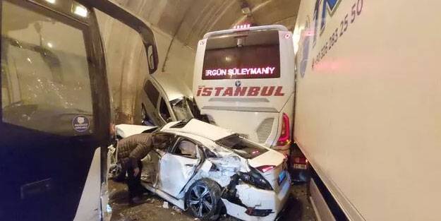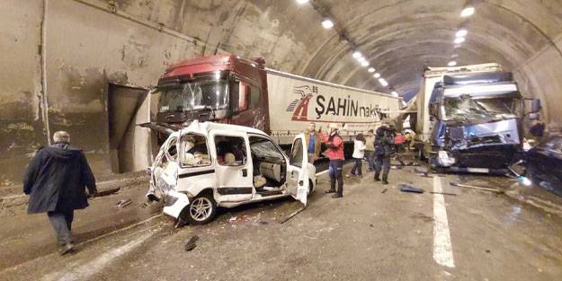 Son dakika haberi: Kuvvetli kar yağışının devam ettiği saatlerde Bolu Dağı Tüneli'nde zincirleme kaza meydana geldi. Alınan bilgilere göre çok sayıda TIR, kamyon, otobüs ve otomobil birbirine girdi. Kaza sonrası Anadolu Otoyolu'nun İstanbul istikatine trafiğe kapatıldı. Çok sayıda kişi araçlarından tahliye edildiği gibi hastanelere sevk ediliyor. Bolu Valisi Ahmet Ümit, "Ekipler bölgeye gidiyor, yaralılar olduğunu biliyoruz" dedi.