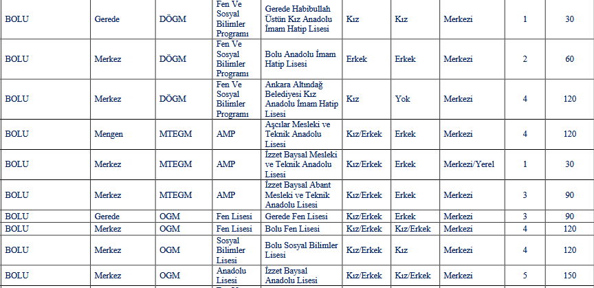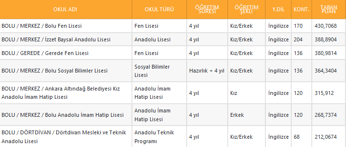 Bolu liseleri taban puanları için tıklayınız...