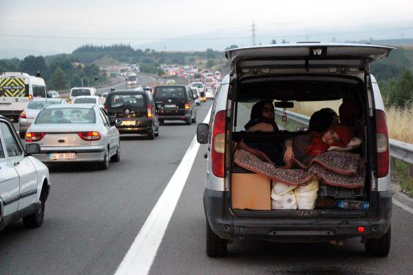 Adım adım ilerleyen trafikte tatilciler yorgun düştü. Araçları arıza yapanlar ile trafikte yorgun düşen sürücüler emniyet şeridinde durdu. Tatilcilerin kimisi araçlarındaki koltuklarda ve bagajlarda, kimisi de kamyonet kasalarında uyuyup dinlenerek yoğunluğun azalmasını bekledi. Kamyonet kasasında uyuyan 40 yaşındaki Erdoğan Gürkan, İstanbul'dan Yozgat'taki bir yakınının cenazesine katılmak için 23.00'te yola çıktıklarını, ancak yoğun trafik nedeniyle öğleleyin kılınacak cenaze namazına yetişmelerinin olanaksız olduğunu söyledi. Diğer tatilciler de saatlerdir yollarda olduklarını, bayram tatilinin çileye döndüğünü söyledi.