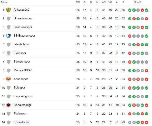 Öte yandan Ligde 23 Ocak Pazar günü saat 19.00'da başlayan ve elverişsiz hava ve saha koşulları nedeniyle 12. dakikada önce ertesi güne, ardından da ileri bir tarihe ertelenen Eyüpspor-Bursaspor müsabakası ise kaldığı dakika ve şartlarda 10 Mart Perşembe günü saat 20.00'de yapılacak.
