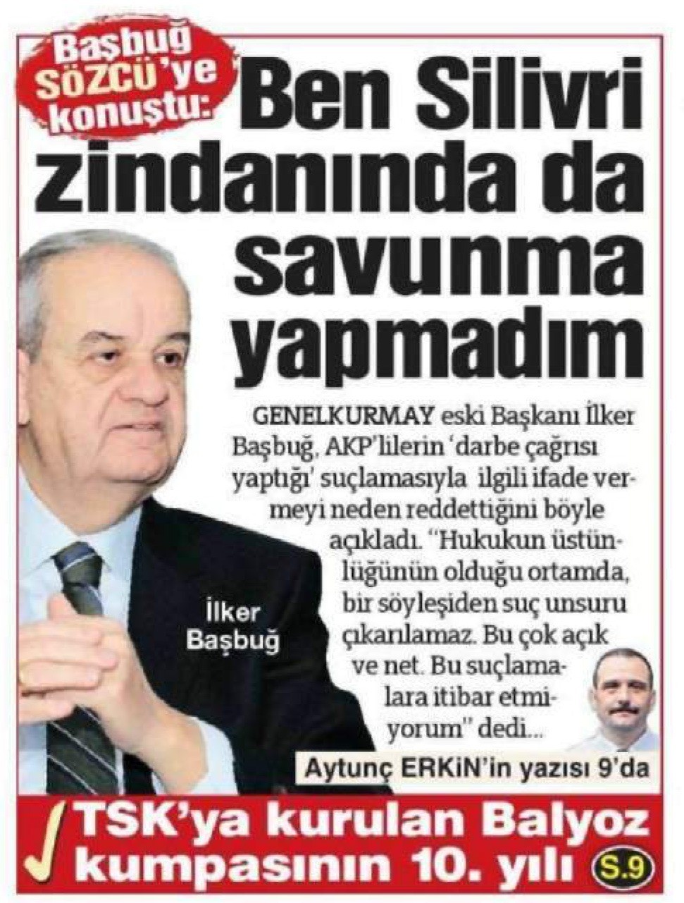 Akit TV'de Murat Alan'ın sunumu ve Yeni Akit Gazetesi Sorumlu Yazı İşleri Müdürü Ali İhsan Karahasanoğlu'nun yorumlarıyla ekranlarınıza gelen Manşetlerin Dili'nde, eski Genelkurmay Başkanı İlker Başbuğ'un hiç savunma yapmadan beraat ettiği yönündeki algı oluşturma çabaları çürütüldü.