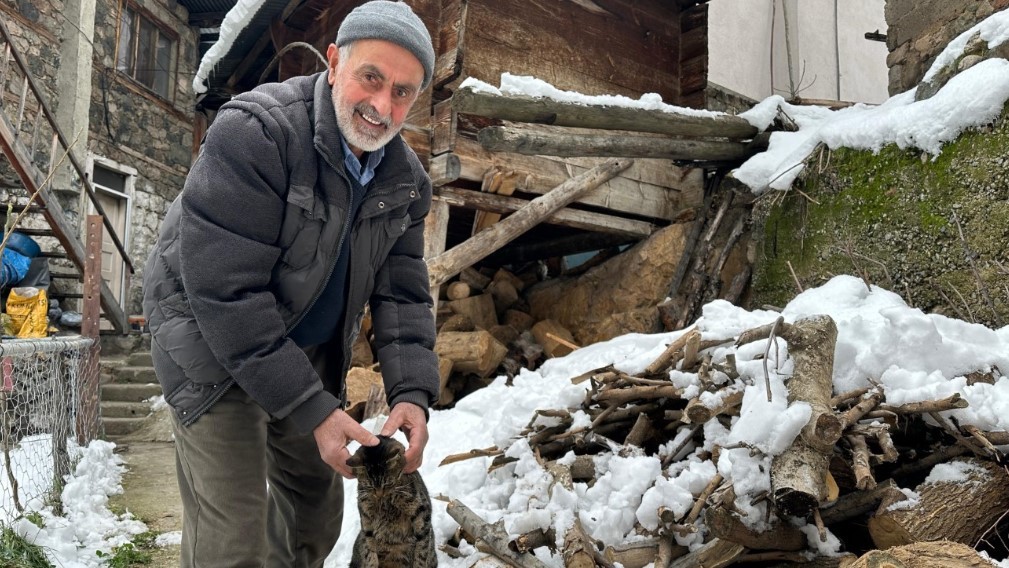 Artvin’in Yusufeli ilçesine bağlı Dereiçi köyünde yaşayan 67 yaşındaki Ahmet Şahin, kar yağışı sonrası köyün Varmet mezrasında mahsur kalan kedilerini aç bırakmıyor. Mezranın yolu kar nedeniyle kapanınca, Şahin her 3 günde bir karla kaplı yollarda ilerleyerek kedilerine yiyecek taşıyor. Geçtiğimiz günlerde kedileri beslemek için, mezradan köye dönüş yapan Şahin’in 6 kedisinden 2’si peşine takılarak köye inmeyi başardı. Ancak diğer 4 kedisi mezrada kaldı. Ahmet Şahin, geride kalan kedilerine ulaşmak için zor koşullarda mücadele etmeye devam ediyor.