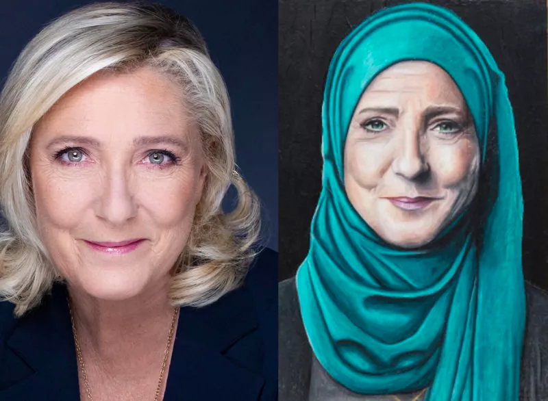 Müslüman karşıtlığıyla bilinen aşırı sağcı adaylar Le Pen ve Eric Zemour, birer Müslüman olarak resmedildi.