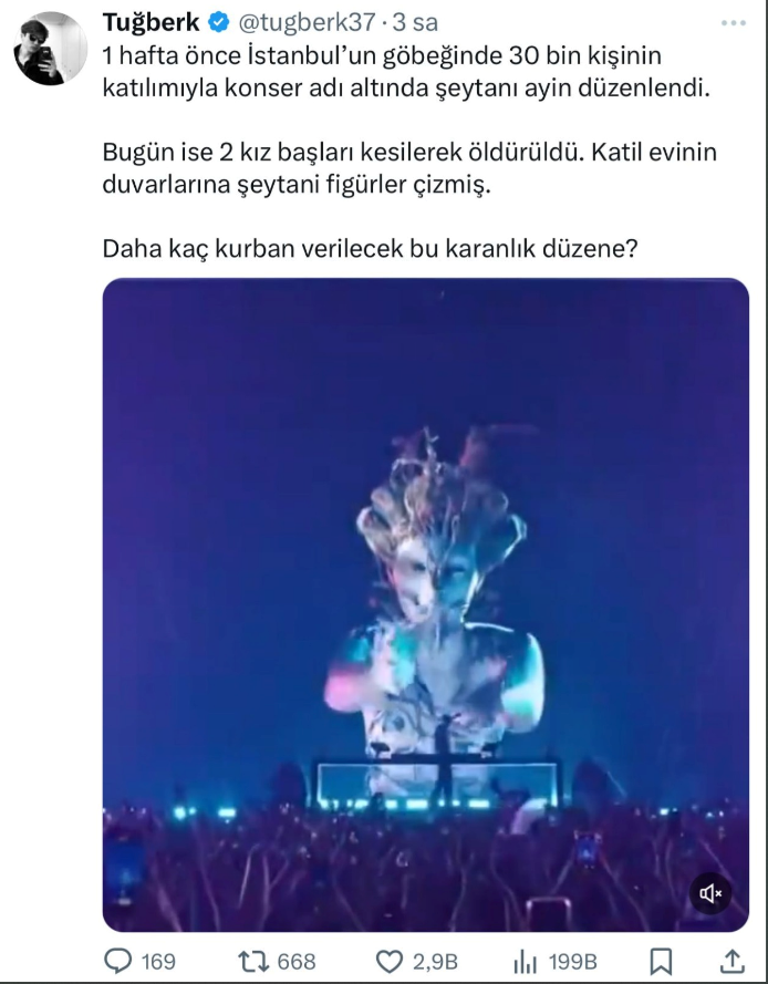 İstanbul Ataköy Marina Arena'da, binlerce kişinin katıldığı Anyma konseri, adeta bir satanist ayin gibi sahneye kondu!.. Tüm değerlerimize karşı yapılan bu saldırıda, şarkılar eşliğinde satanist semboller boy gösterdi. “Bu neyin sanatı?” tepkilerine neden olan konser, “Bu sapkınlar hangi cesaretle bu tür bir ahlaksızlığı normalleştiriyorlar?” sorusunu akıllara getirdi.