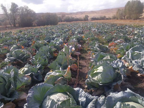 İç Anadolu'nun önemli tarım bölgelerinden biri olan Yozgat'ta hasadı yapılan lahanaların büyüklüğü, görenlerin ağzını açık bırakıyor.