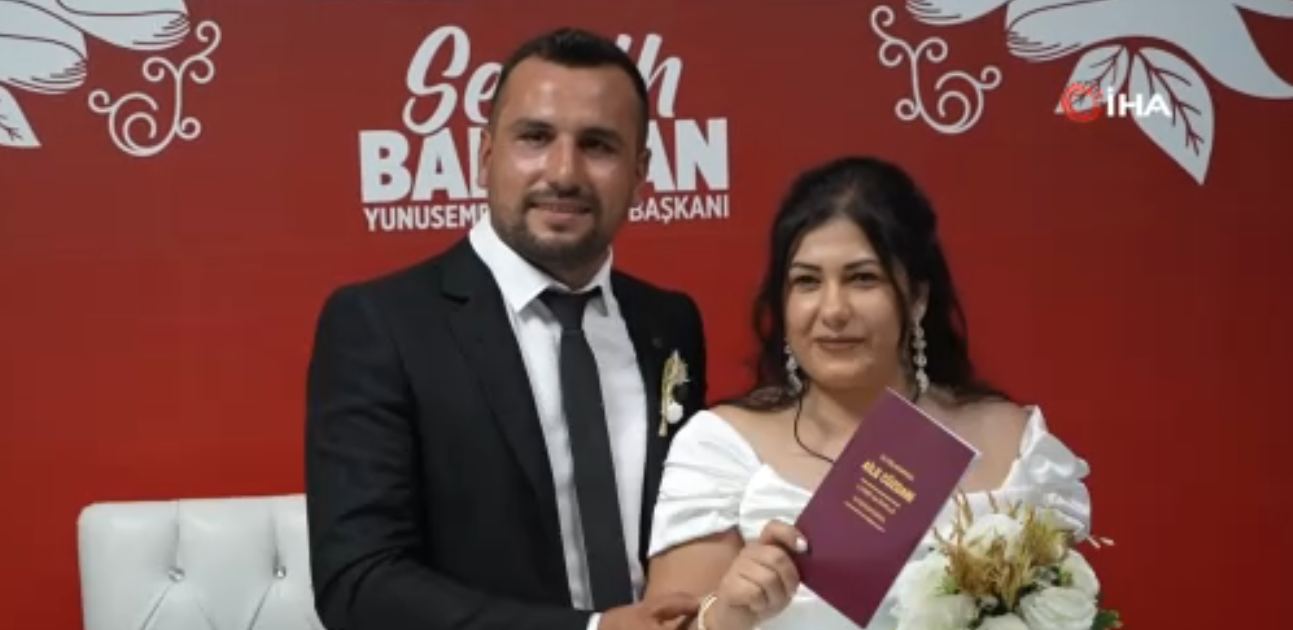 Manisa'nın Yunusemre ilçesine bağlı Kayapınar Mahallesinde yaşayan 31 yaşındaki Doğan Çoban ve Funda Akar Yunusemre Belediyesi Millet Çarşısındaki Nikah Salonunda dünya evine girdi. 15 yıldır vinç operatörü olarak çalışan damat Doğan Çoban gelin aracı olarak da iş makinesi olan vinci tercih etti.