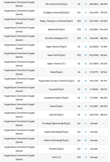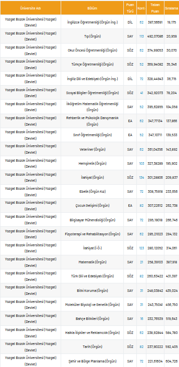 Bozok Üniversitesi 2021 taban puanları ve yüzdelik dilimleri nelerdir?