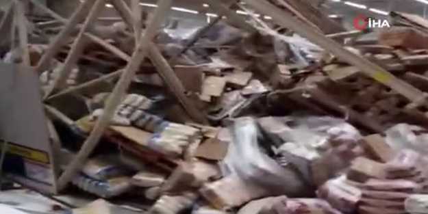 Brezilya’nın Maranhao eyaletine bağlı Sao Luis kentinden bulunan Mix Mateus Atacarejo isimli süpermarketteki metal raflar domino taşı gibi devrildi. Müşterilerin de bulunduğu sırada birçok kişi devrilen rafların altında kaldı.