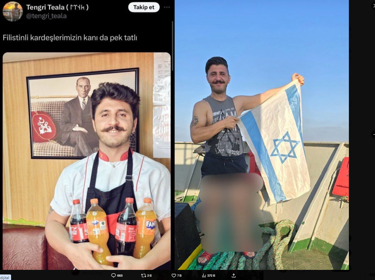 Bu adam hala neden tutuklanmadı! Filistinlilerin kanı pek de tatlı diyerek İsrail bayrağı açmıştı. Irkçı Kemalist Saraçhane’de görüntülendi