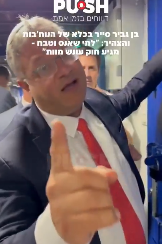 Dünyada en fazla nefret edilen kişi olan İsrail Başbakanı Binyamin Netanyahu’dan sonra en fazla nefret edilen ikinci kişi olan İsrailli Bakan Itamar Ben Gvir de bunlardan biri. Itamar Ben Gvir, Filistinlilerin tutulduğu bir hapishaneden video yayınlayarak idam çağrısında bulundu.
