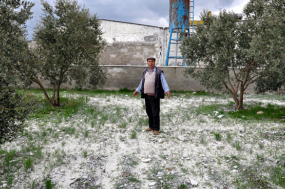 Kara, AA muhabirine yaptığı açıklamada, mermer atıkları nedeniyle tarım arazisinin büyük bir bölümünün beyaza büründüğünü söyledi. Daha önce de mermer atölyesinden kaynaklı benzer sorunlar yaşadığını savunan Kara, zeytin ağaçlarının mermer atıkları nedeniyle zarar gördüğünü vurguladı.