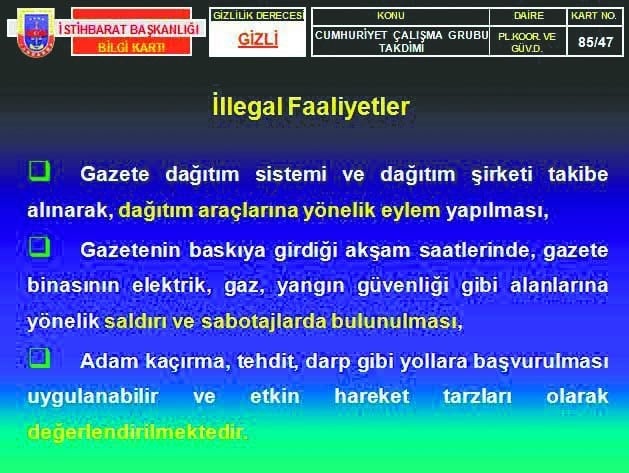 “3- Adam kaçırma, tehdit, darp gibi yollara başvurulması uygulanabilir ve etkin hareket tarzları olarak değerlendirilmiştir.” İşte bunlar bile 28 Şubat’ın ne olduğunu ortaya koymaktadır.