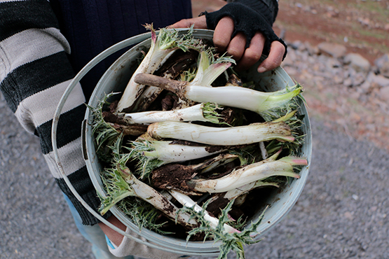 Hayvanlarını otlatırken çevreden de kenger topladığını belirten Arık, "Günde iki kova kenger topluyorum ve buradan geçen sürücülere satarak para kazanıyorum." dedi.