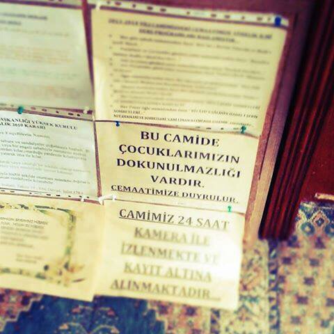İnternette dolaşan bir fotoğraf görenlere 'helal olsun' dedirtti. Nerede çekildiği hakkında bilgi verilmeyen fotoğrafta bir panodaki duyuruda, 'Bu camide çocuklarımızın dokunulmazlığı vardır Cemaatimize duyrulur' yazısı dikkat çekiyor.