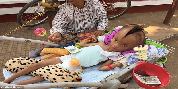 Kamboçya'dan 6 yaşındaki Pheaktra Pov, kafatasında bir yarıkla doğdu.