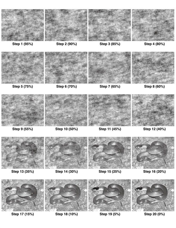 Bilim insanlarına göre insanlar, bu dört hayvan arasından yılanın diğerlerine daha net görüldüğünü söylüyorlar. Bunun sebebine değinmeden önce bir de aşağıdaki fotoğrafları bir inceleyin. Bakalım kaçıncı adımda gizlenmiş olan hayvanı fark edebileceksiniz.