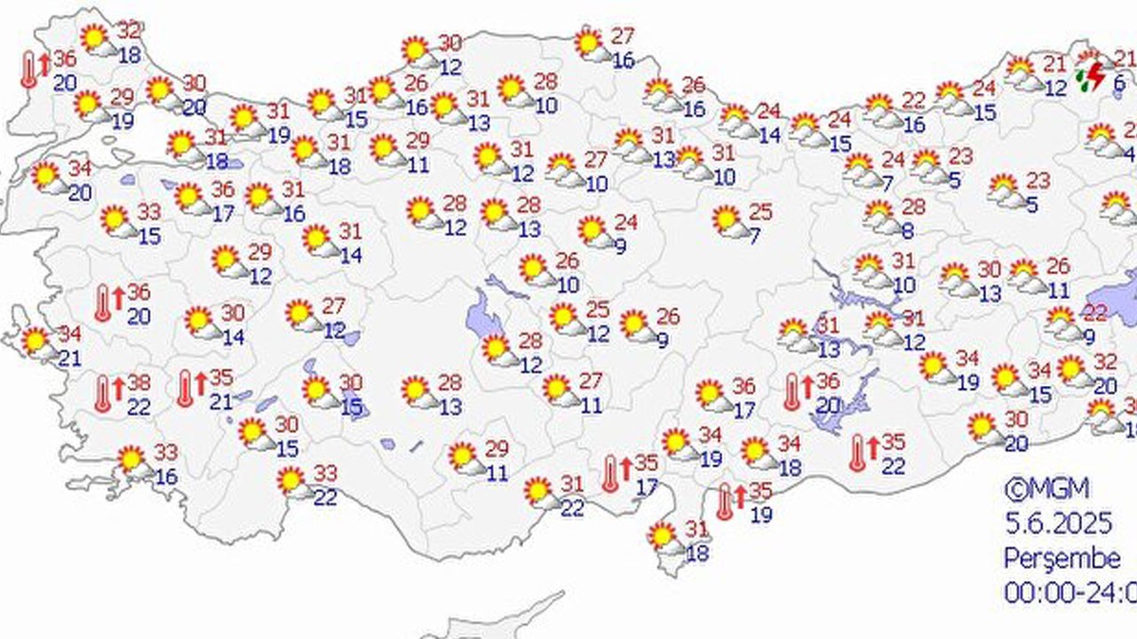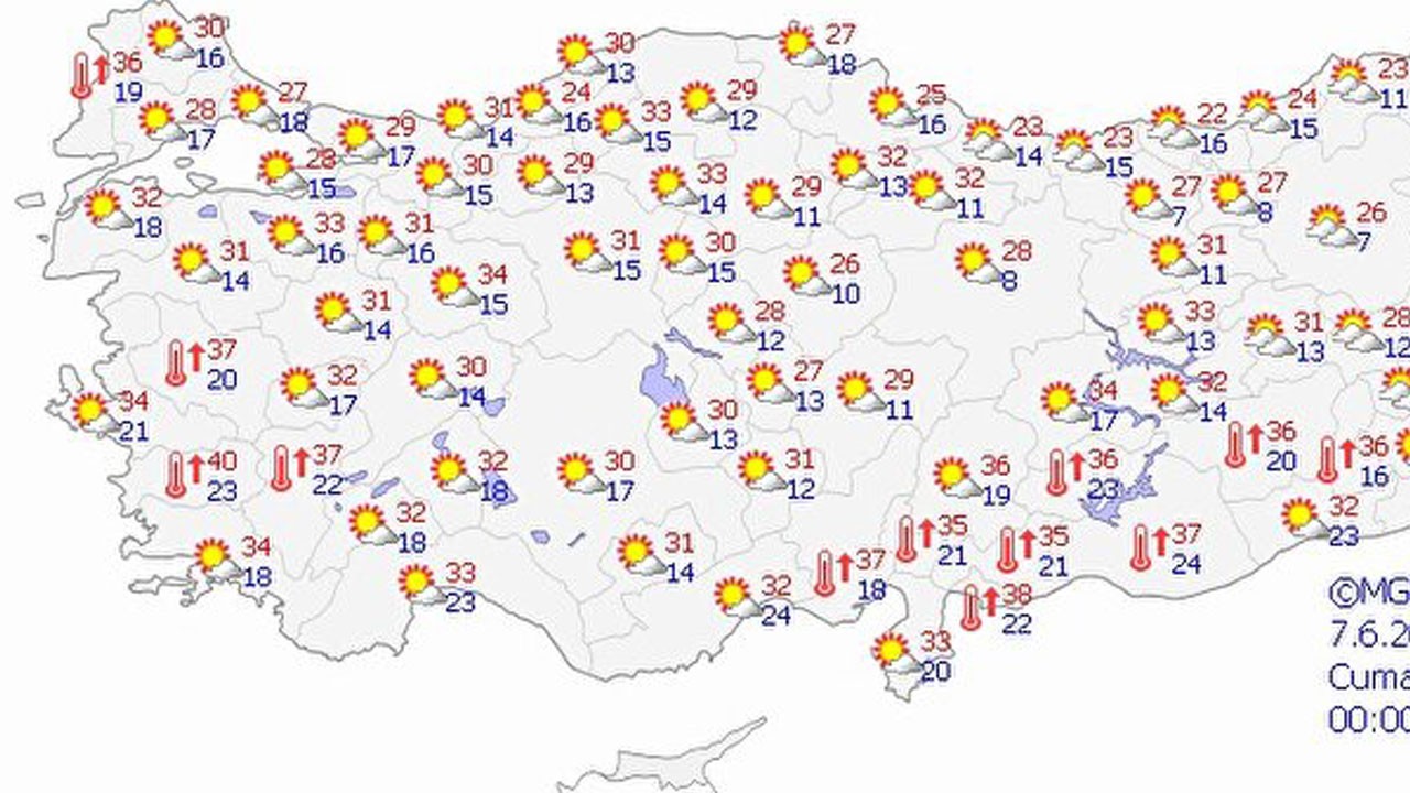 4 Haziran Çarşamba gününden itibaren ülkemizin batı bölgelerinden başlayarak sıcak ve yağışsız bir havanın etkili olması bekleniyor. Hava sıcaklıklarının çarşamba günü batıdan başlayarak yükselmesi ve Kurban Bayramı boyunca yurt genelinde mevsim normallerinin üzerine çıkması öngörülüyor.