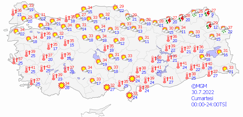 Meteoroloji Genel Müdürlüğü tarafından yapılan son değerlendirmelere göre: Ülkemizin kuzeydoğu kesimlerinin parçalı, yer yer çok bulutlu, öğle saatlerinden sonra Ordu, Giresun, Trabzon ve Rize’nin iç kesimlerinin yerel sağanak ve gök gürültülü sağanak yağışlı, diğer yerlerin az bulutlu ve açık geçeceği tahmin ediliyor.