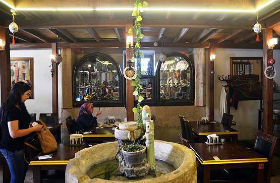 "Tarihi hamamı biz şu anda restoran kafe olarak işletiyoruz. Hava sıcaklığı dışarıda yaklaşık 35-40 derece arasında değişirken burası oldukça serin. Dışarıdaki sıcaklardan bunalan müşterilerimiz eski hamam olan burayı tercih ediyor. Atasözünde 'Hamama giren terler' deniliyor ama bizim buraya gelen tam tersine serinliyor. Burada yöremizin lezzetli yemek ve tatlarını müşterilerimize sunuyoruz."