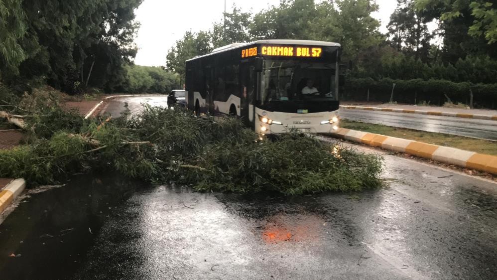 Aniden başlayan şiddetli rüzgar nedeniyle ağaçlar devrildi.