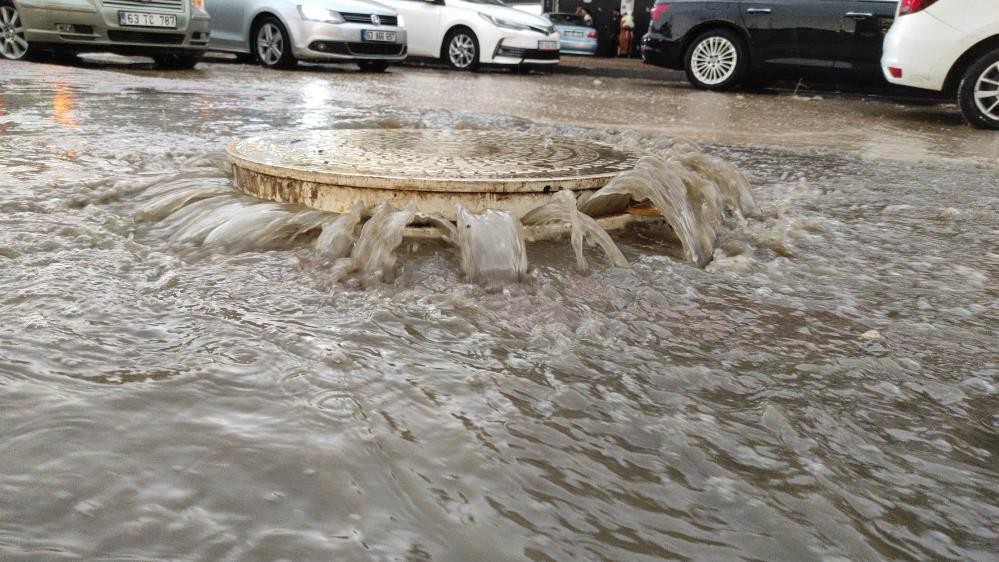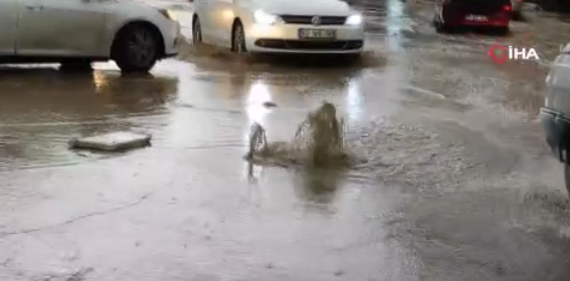 Fırtınanın ardından başlayan şiddetli yağmur ise 5 dakikada yollarda su birikintileri oluşturdu. Bazı iş yerlerini su basarken, rögarlardan su fışkırdı.