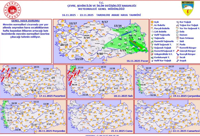 Yağışların, genellikle yağmur ve sağanak, Doğu Karadeniz'in iç kesimlerinin yüksekleri ile Doğu Anadolu'nun kuzey ve doğusunun yükseklerinde karla karışık yağmur ve yer yer kar şeklinde olması bekleniyor.