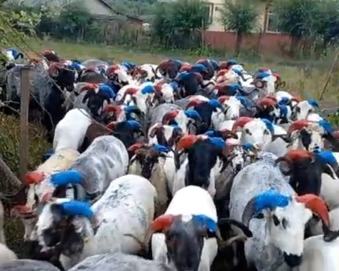 Trabzonspor fanatiği besici Ramazan Aksoy, 2 bin 50 keçi ve koçun boynuzlarını bordo maviye boyadı. Aksoy, boynuzların tamamını 2 günde boyadığını anlattı.