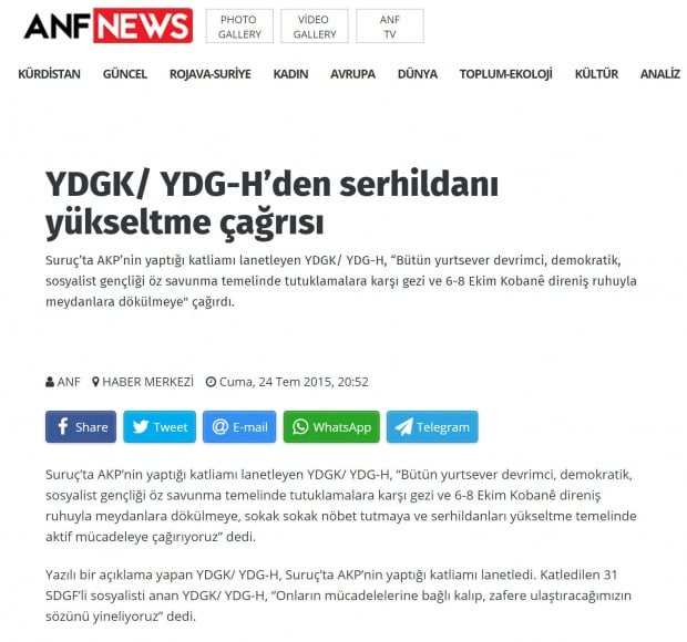 Hendek terörü döneminde ANF üzerinden yapılan çağrılarla, terör örgütü PKK'nın saflarına katılım istenmişti.
