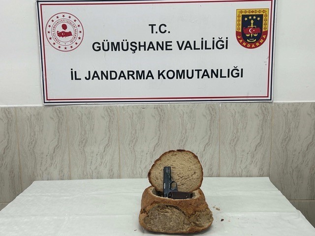 Gümüşhane’de jandarma ekipleri ekmeğin içerisine gizlediği ruhsatsız tabancayı satmak için şehir dışına göndermek isteyen şahsı yakalayarak, ruhsatsız tabancaya el koydu.