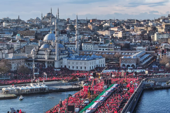 İnsanlık İttifakı ve Milli İrade Platformunca, Filistin'deki katliamın durdurulması amacıyla 400'den fazla sivil toplum kuruluşunun iştirakiyle düzenlenen 'Sinmiyoruz, susmuyoruz, Filistin'i unutmuyoruz' mitingi için sabah namazında camilerde bir araya gelen on binlerce katılımcı, kortejlerle Galata Köprüsü'ne doğru yürüdü.