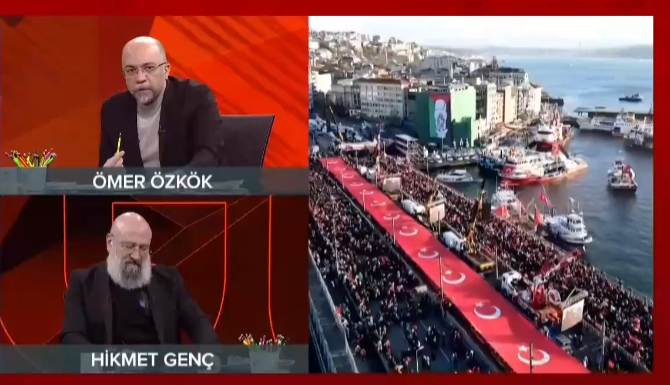 Kanal yöneticilerinin meselelere ideolojik baktığını söyleyen Özkök açıklamasının devamında, "Halk TV ve Sözcü TV seyircilerine hatırlatmış olalım. Sizlerin haberi yoktur; çünkü seyrettiğiniz kanalların yöneticileri meseleye ideolojik yaklaşmaya devam ediyor. Bu sabah dünyaya İstanbul'dan bir ses yükseldi. 500 binden fazla insan, "Sinmiyoruz, Susmuyoruz Filistin'i Unutmuyoruz" diye haykırdı." ifadelerine yer verdi.